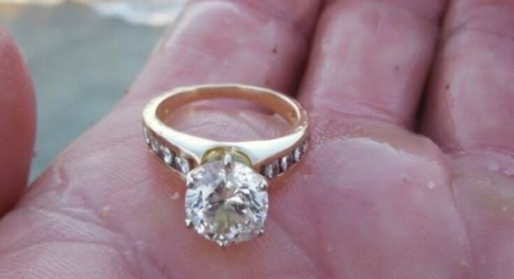The ring sparkled in the sunlight, catching her attention right away. Samantha picked it up and looked closely, noticing tiny letters engraved inside: “E and J.” She wondered about the story behind it.