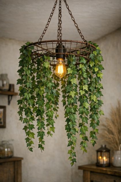 This DIY chandelier pairs beautifully with rustic or bohemian-inspired interiors. Consider hanging it above a wooden dining table to complement the natural elements, or use it in a room with neutral tones to add a pop of green. Soft lighting, such as fairy lights or candles, will enhance the magical ambiance of the vines. Add natural textures like jute rugs or linen curtains to complete the look.