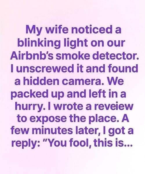 That night, as the narrator lay awake beside his wife, one chilling thought haunted him: safety is an illusion. Online reviews and cozy listing photos offer false comfort. Behind the walls of a seemingly normal home could be something far more sinister. And sometimes, the blinking light isn’t there to warn you — it’s there to watch.